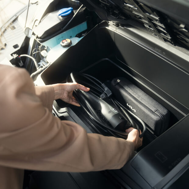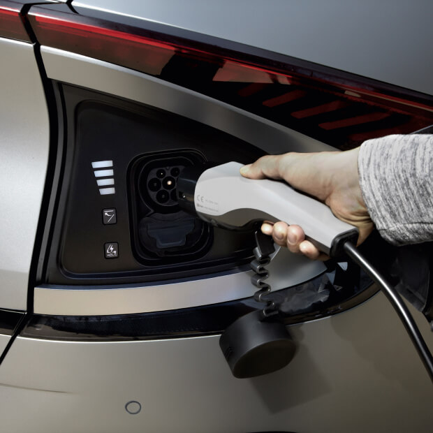 Լիցքավորման միակցիչի կափարիչը բացվում և փակվում է էլեկտրական շարժակի օգնությամբ՝ բավարար է պարզապես թեթևակի սեղմել դռնակը կամ սարքավորումների վահանակից ձախ գտնվող կոճակը։ Կափարիչի տակ գտնվող սանդղակները ցույց են տալիս լիցքի ընթացիկ մակարդակը։