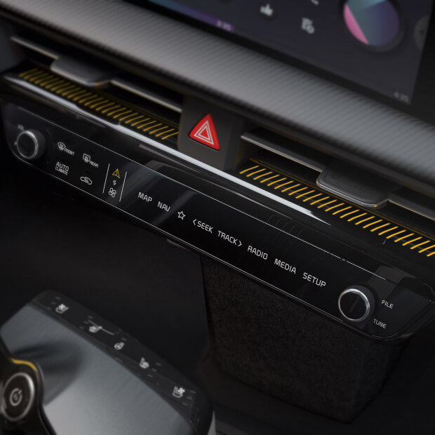 Սեսնորային LED ստեղնաշարը արագ փոխում է իր դասավորվածությունը՝ մեկ հպումի միջոցով։ Սեղմեք սլաքի պատկերը՝ մուլտիմեդիա համակարգը կառավարելու, կամ օդափոխիչի պատկերը՝ կլիմայական համակարգը ակտիվացնելու համար։