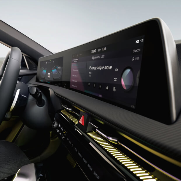 Համայնապատկերային վահանակը միավորում է սարքավորումների վահանակի և նավիգացիոն համակարգի երկու 12,3” HD-էկրանները։ Ինտուիտիվ հասկանալի գրաֆիկան և սենսորային կառավարումը ապահովում են վարորդի առավելագույն հարմարավետությունը։